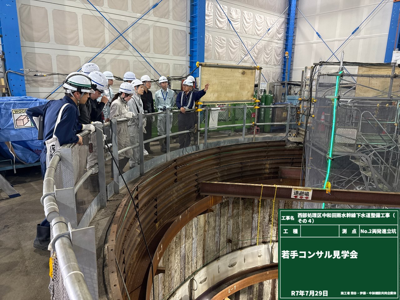 見学会を実施しました 7/29(火)PM 横浜市コンサル協会の若手職員20名による見学会を実施しました。 場内、立坑(たてこう:将来マンホールになる縦穴)をそれぞれ見学し、 たくさんの質疑応答で活発な会になりました。 今後も、見学会を実施する予定ですので、お楽しみにお待ちください!